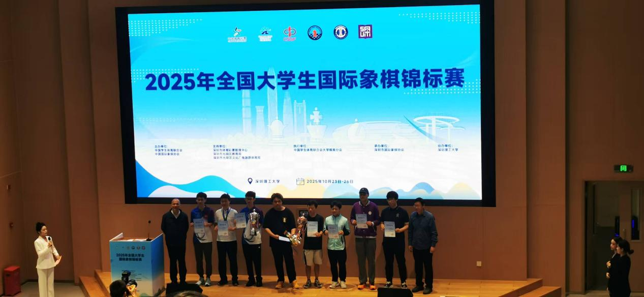 本次赛事由中国学生体育联合会、中国国际象棋协会联合主办,是全国大学生国际象棋领域的最高级别赛事。赛事于 10 月 23 日至 26 日举行,为期四天的赛程中,来自全国 130 所院校的顶尖选手齐聚一堂,展开了智力与耐力的巅峰对决。其中不乏多位国家健将级高水平运动员,竞争激烈程度堪称历年之最。南科大此次派出 12 名学生运动员参赛,由体育中心董伦红主任担任领队,侯思宇、赵一品两位教练组成专业指导团队,这也是学校国际象棋项目首次登上全国性赛事的舞台。