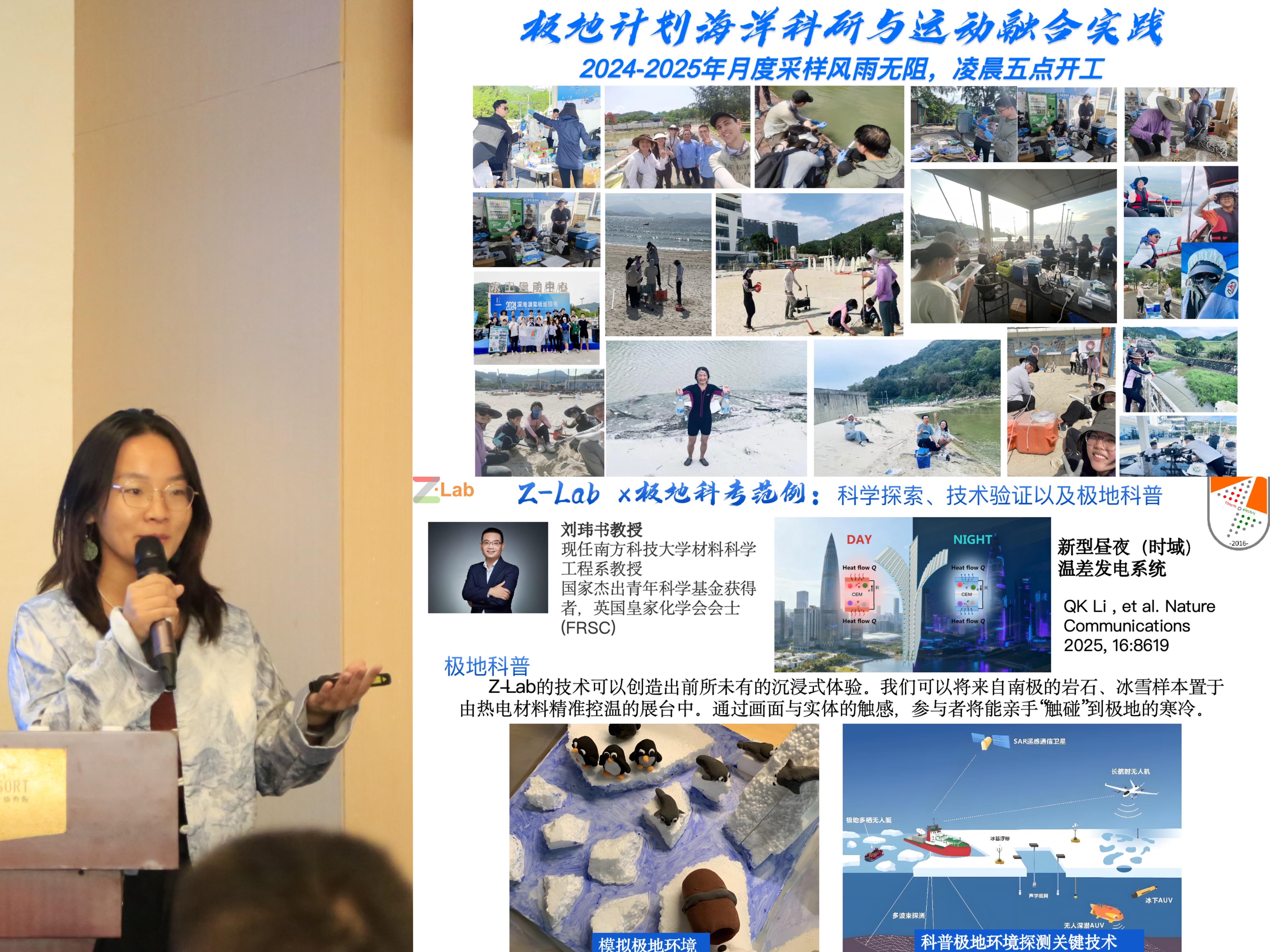 她还介绍了来自材料科学与工程系刘玮书教授团队的“微小温差发电与热功能材料”前沿技术,正期待从实验室走向极地,准备接受在南极极端条件下最严苛的性能检验,为我国在极端环境下的能源利用与温度调控领域探索更多可能。