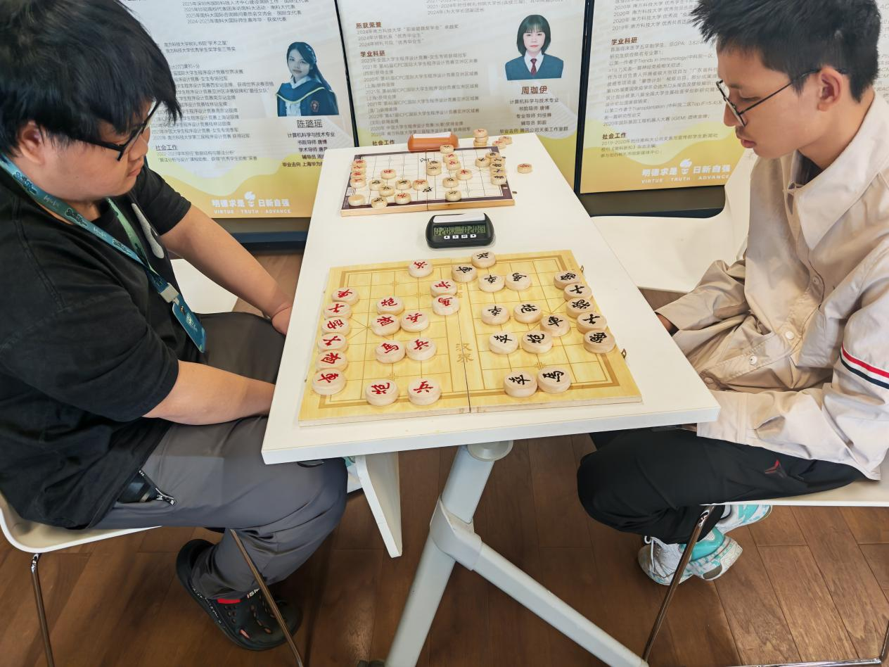 楚河汉界论英雄,纹枰对弈展风华。2025年12月14日,由南方科技大学体育中心主办,树礼书院与弈林棋社联合承办的第二届中国象棋迎新赛在学生宿舍 16 栋 103 活动室顺利收官。来自全校的本科生、研究生及博士生棋手齐聚一堂,以棋为媒切磋技艺、增进情谊,在方寸棋盘间演绎智慧交锋,为校园文化生活增添了浓厚韵味。