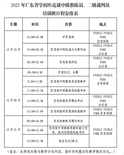 12月19-21日,2025年广东省学校匹克球中级教练员二级裁判员培训班在深圳市龙岗区PICKLEPICKLEPARK举行,此次培训由广东省学生体育艺术联合会、深圳市匹克球协会联合主办,广东皮克球体育有限公司承办,我校体育中心教师魏伟成参加了此次培训,并且通过培训考核获得中级匹克球教练员、二级匹克球裁判员证书。匹克球运动集网球、羽毛球、乒乓球运动于一体,简单易学、有趣、运动损伤极少、老少咸宜,除了专用场地,也可与网球场、羽毛球、篮球场地综合使用,兼容性强,为爱好运动的人士提供了新的选择。匹克球在深圳快速“破圈”,参与人群已覆盖青少年、上班族、亲子家庭、中老年群体等各个年龄层,形成常态化参与氛围,“几乎天天都有球局和活动”。