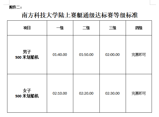 (二)达到南方科技大学陆上赛艇通级达标赛等级标准(一级、二级、三级)的运动员颁发通级证书。